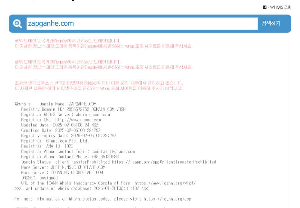 마지막으로 도메인 zapganhe.com 접속 화면과 해외 등록 정보가 함께 제시됐습니다. 로그인 이후 은행계좌, 보안센터 메뉴로 이동하는 화면이 순차적으로 공유됐고, 리딩방에서는 이전과 동일한 수익 인증 이미지가 다시 등장했습니다. 전반적인 흐름은 다올투자증권 사칭 교수비서 사칭 기관계좌 리딩방 출금수수료라는 구조가 단계적으로 반복되는 모습으로 정리됩니다.