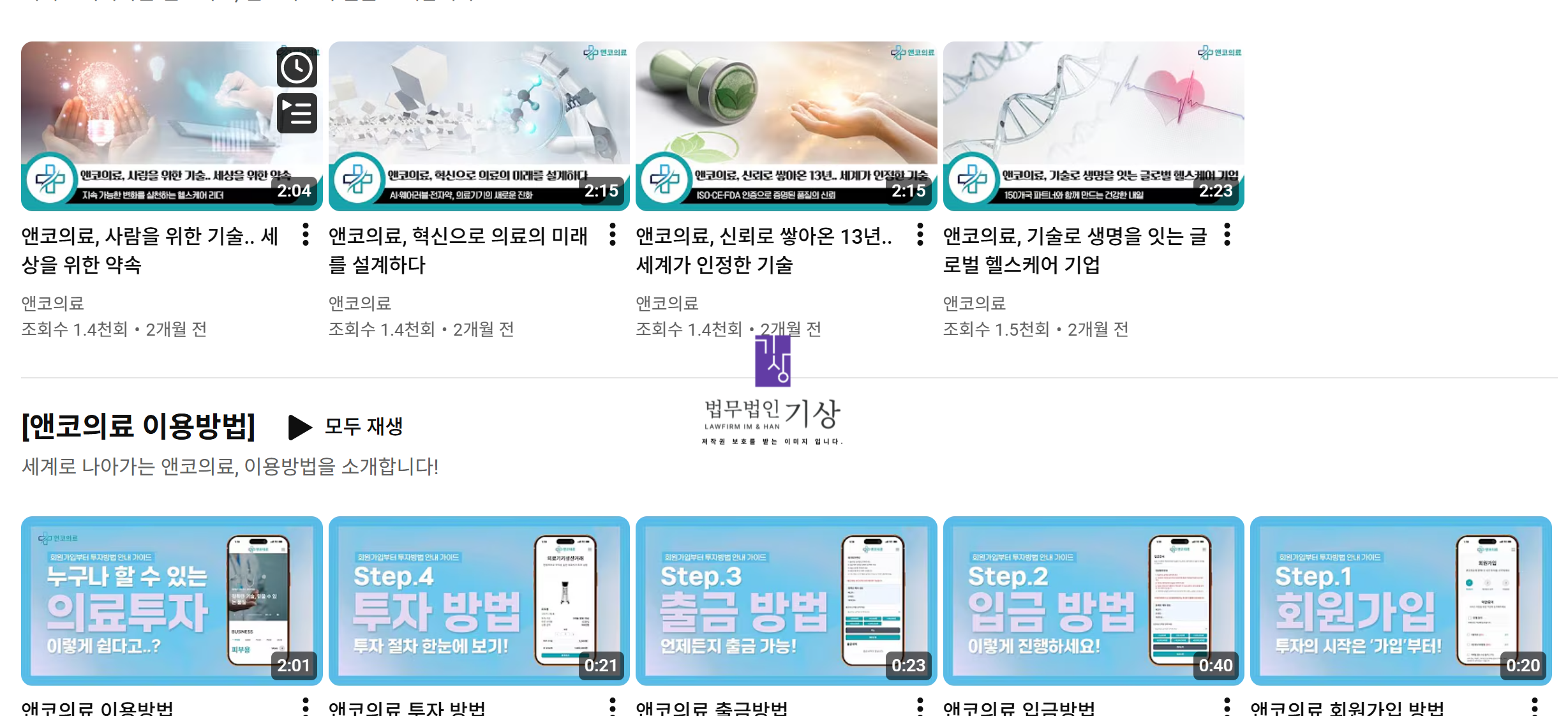 의료기기 산업에 투자하면 안정적인 배당금을 받을 수 있다는 안내로 시작된 이 사례는 온라인 광고를 통해 플랫폼으로 유입되는 구조를 보였습니다. 홍보 영상에서는 의료 기술과 글로벌 진출을 강조하며 신뢰감을 형성했고, 투자자는 실제 의료 기업의 공식 투자 채널로 오인할 수밖에 없는 환경에 놓였습니다. 플랫폼 명칭으로 사용된 **앤코의료**는 의료 기업 이미지를 적극 활용하고 있었습니다.