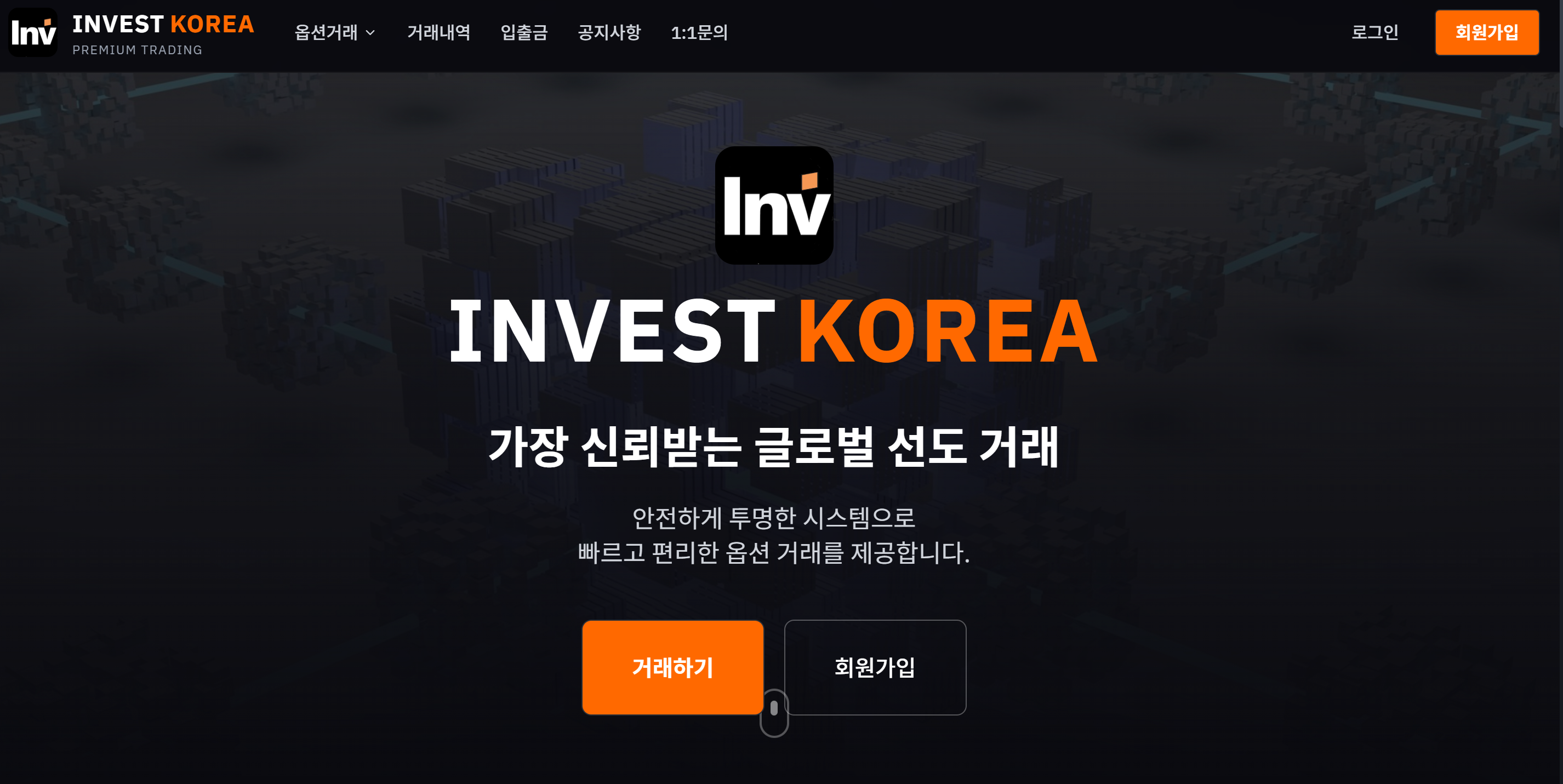 옵션거래를 통해 글로벌 지수와 원자재를 실시간으로 거래할 수 있다는 안내를 통해 INVEST KOREA(인베스트 코리아) 플랫폼에 접속하게 됐습니다. 접속 주소는 invest-korea.kr였으며