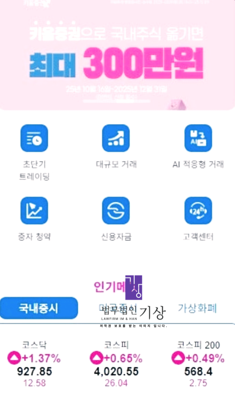 <실존금융사 미래가치공동창출계획 사기, 김영익 및 염승환 등 키움증권 사칭 리딩방 최성호 애널리스트 피해, 형사고소+범죄계좌 추적동결 원스톱서비스 전문로펌>