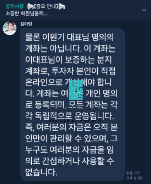 ‘LTH PRO’라는 이름의 프로젝트는 카카오페이증권과 라이트하우스매니지먼트가 협력 중이라고 주장하며 투자자들에게 접근했습니다. 밴드방에서는 “세력 기관이 공동으로 자금을 배치하고 있다.”, “기관계좌 분지 전략을 통해 500% 이상 수익 실현이 가능하다.”는 메시지가 공유되었습니다. 대표로 불린 인물은 “CMA 자금관리계좌를 기반으로 한 효율적 운용 시스템”을 언급하며, 금융감독원 관리와 독립계좌 운영을 강조했습니다. 방 참여자들은 “공식 증권사와 연계된 프로그램인 줄 알고 가입했다.”고 증언했습니다.