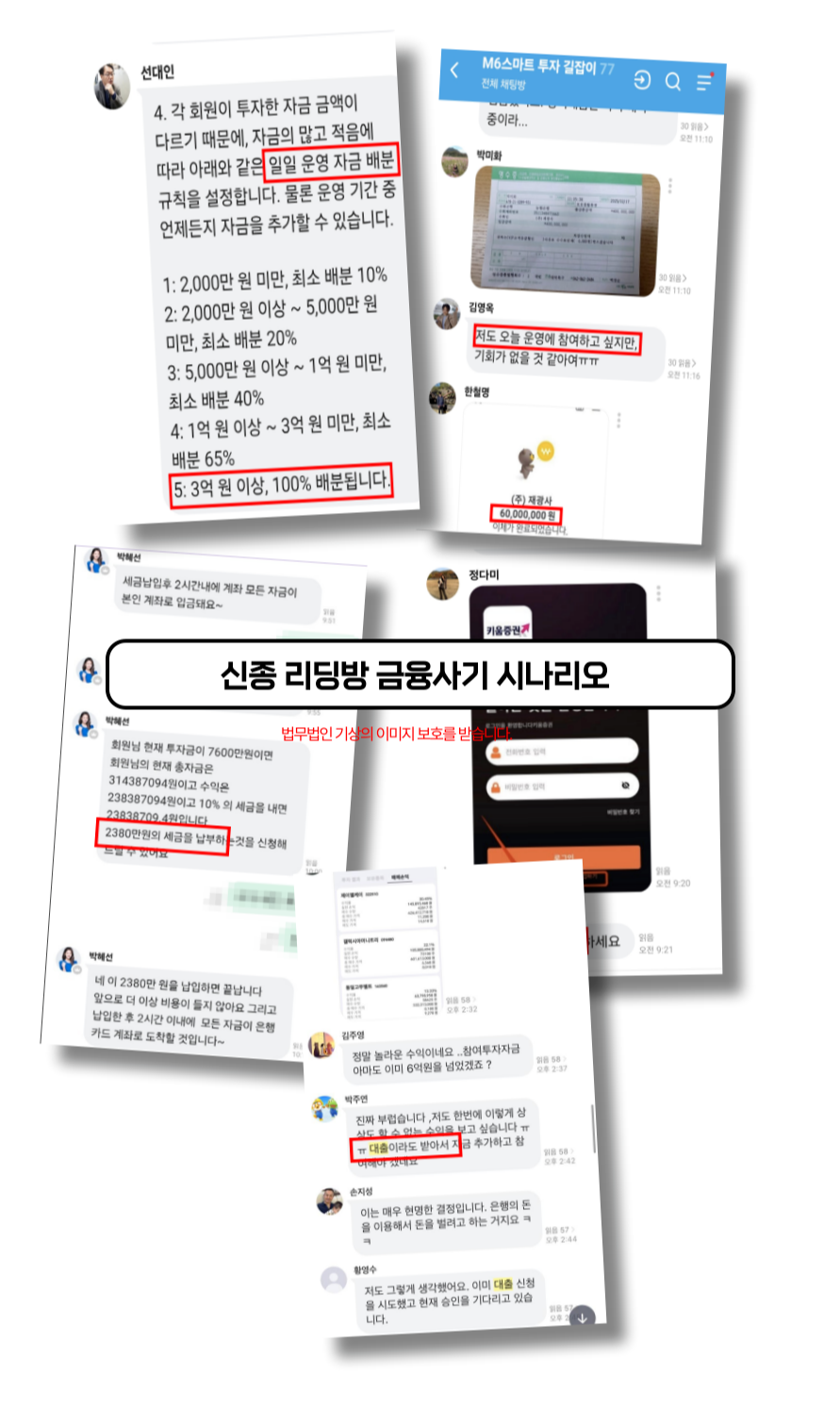 ‘서지연 비서’라 불린 인물은 참여자들에게 “지금 자금이 2억 이상이면 프리미엄 프로젝트 진입 가능하다”, “5일 내 정산되면 수익금 자동 분배된다”는 메시지를 보냈습니다. 대화창에는 “대표님 덕분에 수익 감사합니다”, “오늘도 목표 달성했습니다”라는 글들이 꾸준히 올라왔습니다. 이런 방식으로 신뢰를 쌓은 후, 운영진은 “환전 페이지를 통해 입금하시면 내일 오전 정산된다”는 명목으로 추가 자금을 유도했습니다. 이후 사이트 접속이 중단되었고, 입금된 금액은 모두 인출되지 않았습니다.